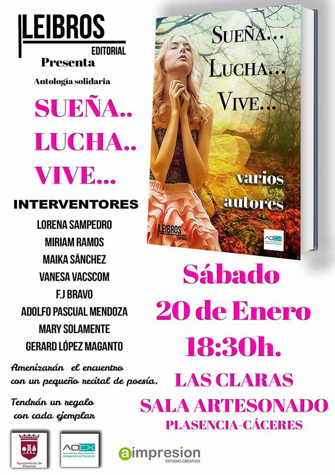 Sueña… Lucha… Vive, es un libro con el que se pretende aportar ese “pequeño” grano de arena que ayude a los enfermos. Un libro salido de la colaboración desinteresada de varios autores junto con Editorial Leibros y la asociación “AOEX, Plasencia”. Son relatos que te enamorarán, te harán soñar incluso fantasear.